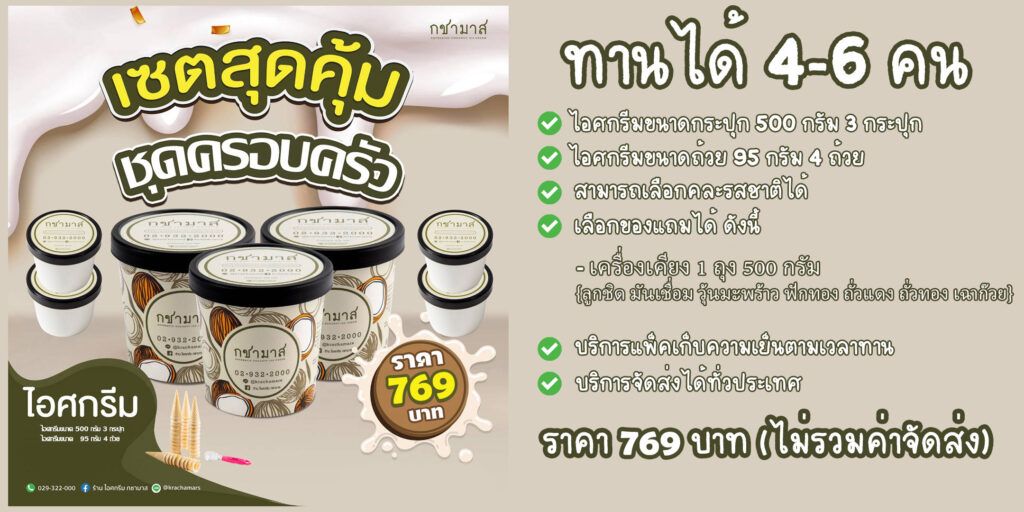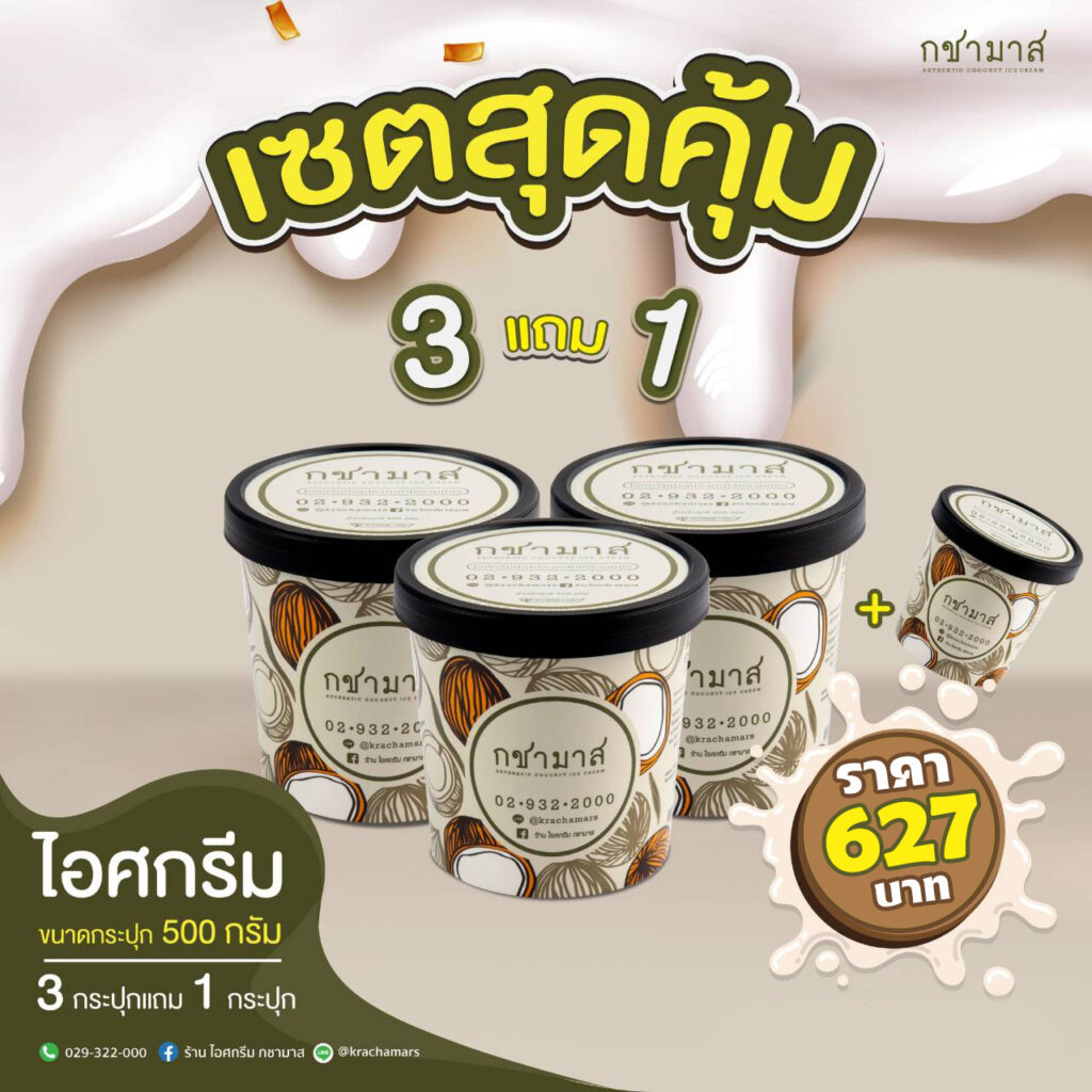 – ไอศกรีมขนาดกระปุก 500 กรัม 3 กระปุก