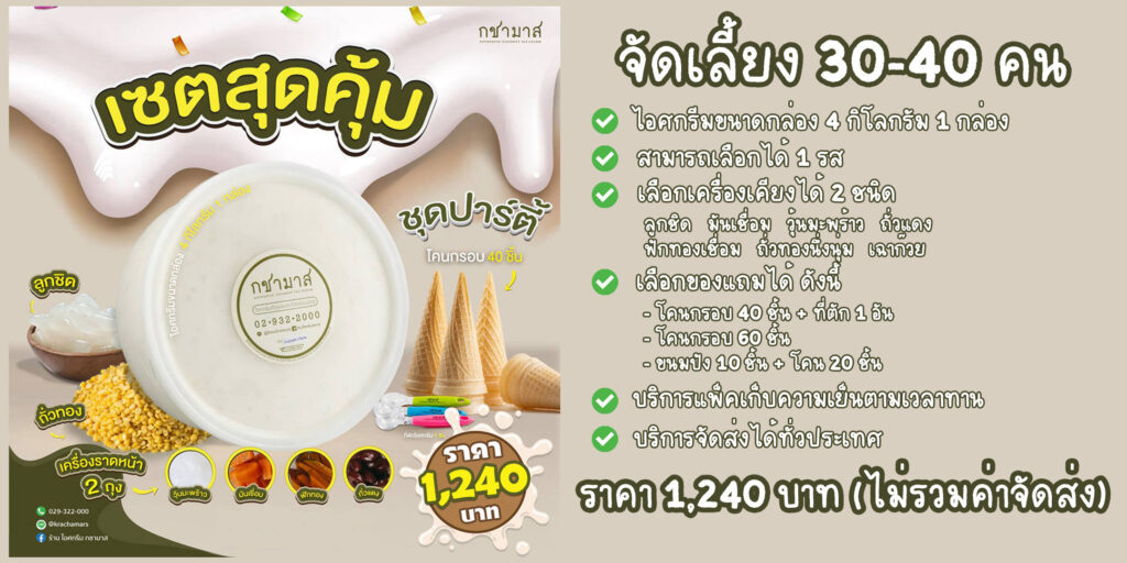 – ไอศกรีมขนาดกล่อง 4 กิโลกรัม 1 กล่อง